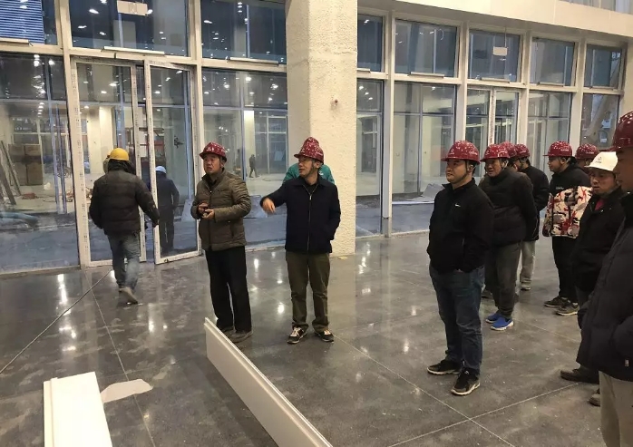 通過督導(dǎo)組與項目部的共同努力,在不到一個月的時間內(nèi),順利完成水磨石地面、墻面艾特板安裝、吊頂、幕墻封圍等作業(yè)。
