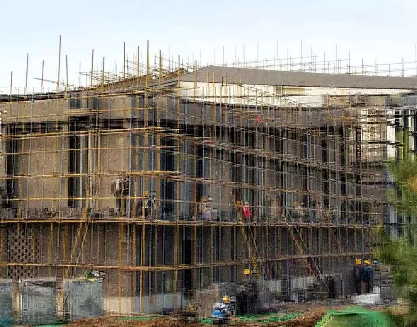 施工中,外裝飾墻鋼結(jié)構(gòu)與市政施工交叉作業(yè)影響較大,施工較為困難。通過督導(dǎo)組與項目部的合理協(xié)調(diào),目前室外增加的三百噸鋼結(jié)構(gòu)已全部完成,其中2-7#展廳夯土墻、石籠墻和鏤空磚墻已施工完成。室內(nèi)已完全具備展陳單位施工條件,室外剩余部分裝飾墻正抓緊時間施工中,預(yù)計12月13日完成所有裝飾墻施工。