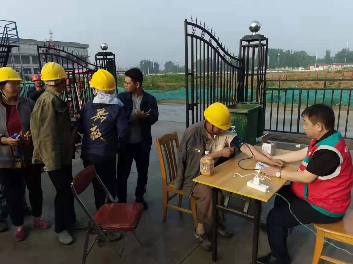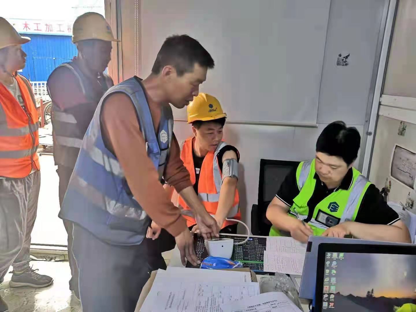內蒙東方國信項目,項目書記利用開早班會時間,親自給每位工人量血壓做記錄